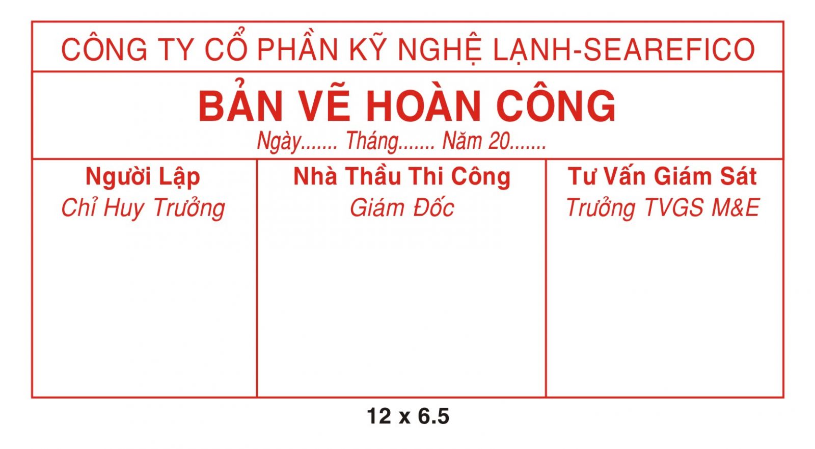 Con dấu này có thể sở hữu dạng khung hình chữ nhật, nội dung của con dấu có thể là tên đơn vị thi công, người giám sát và ngày, tháng, năm làm,…